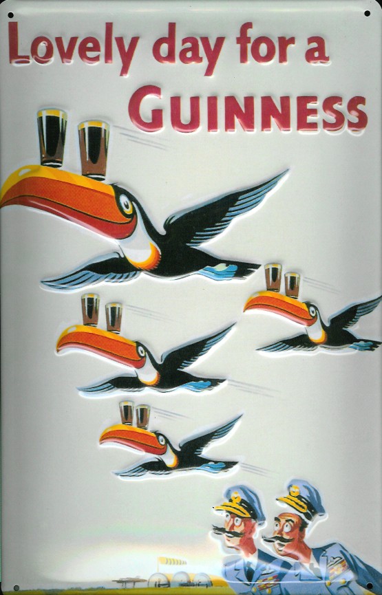 Blechschild Guinness Bier Lovely Day for a Guinness Piloten Toucan Schwar Tukan Schildm