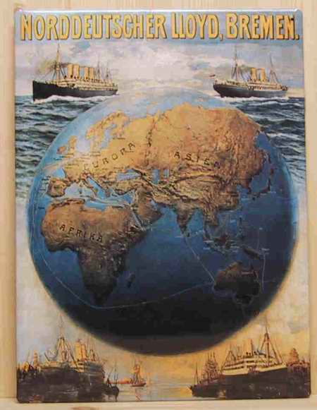 Produktinformationen "Blechschild Norddeutscher Lloyd Bremen Weltkugel Globus Dampfer Reedereiplakat Schiff Schild Nostalg"