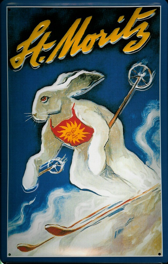 Blechschild Nostalgieschild St. Moritz Skihase Schweiz