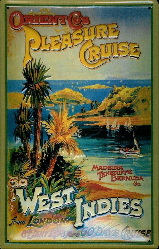 Blechschild Pleasure Cruise Westindien Kreuzfahrt West Indies Dampfer Reedereiplakat Schiff Schild N