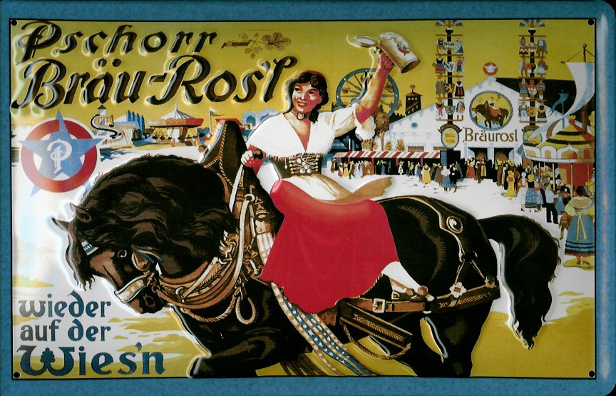 Blechschild Pschorr Bräu Rosl Wiesn Bier München Oktoberfest Schild