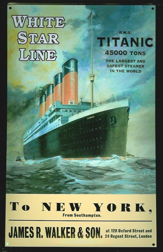 Blechschild Titanic White Star Line to New York Dampfschiff Dampfer Reedereiplakat Schiff Schild Nos