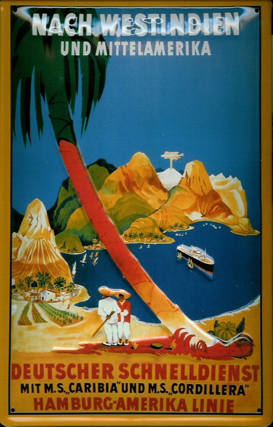 Produktinformationen "Blechschild Westindien und Mittelamerika Hapag Deutscher Schnelldienst Dampfer Schiff Schild Nostalg"