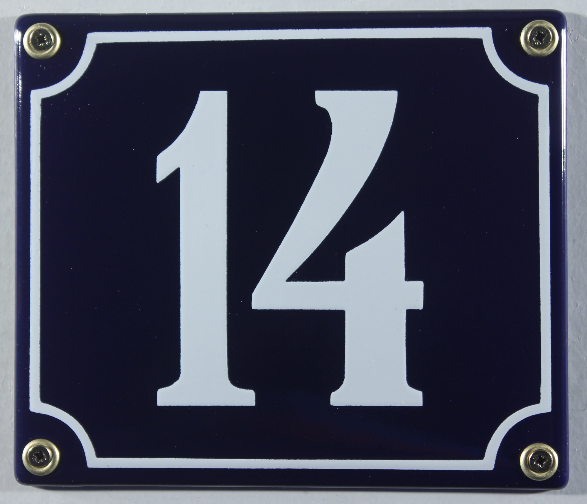 Hausnummernschild Emaille 14 blau - weiß 12x14 cm sofort lieferbar Schild Emaile Hausnummer Haus Num