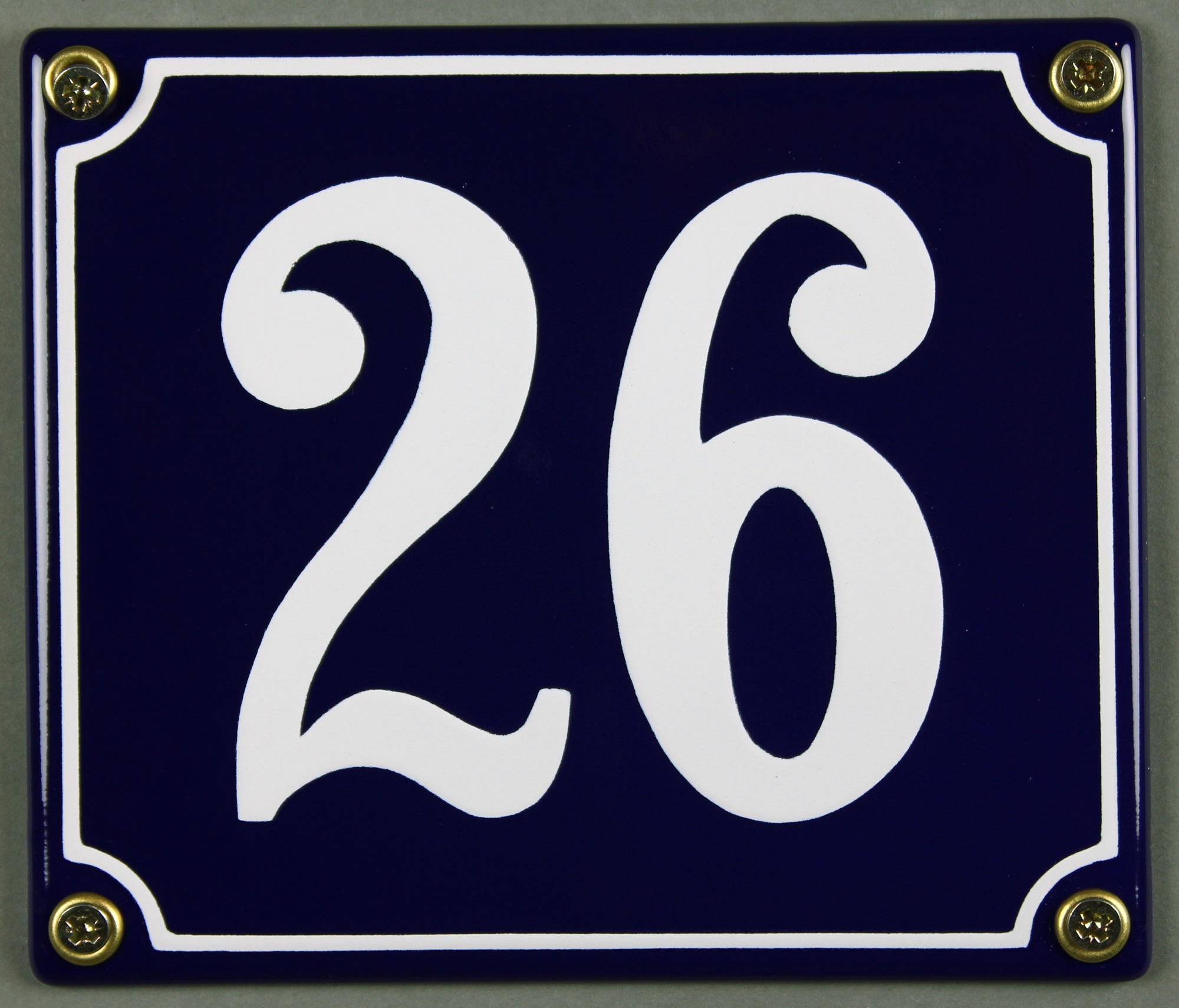 Hausnummernschild Emaille 26 blau - weiß 12x14 cm sofort lieferbar Schild Emaile Hausnummer Haus Num
