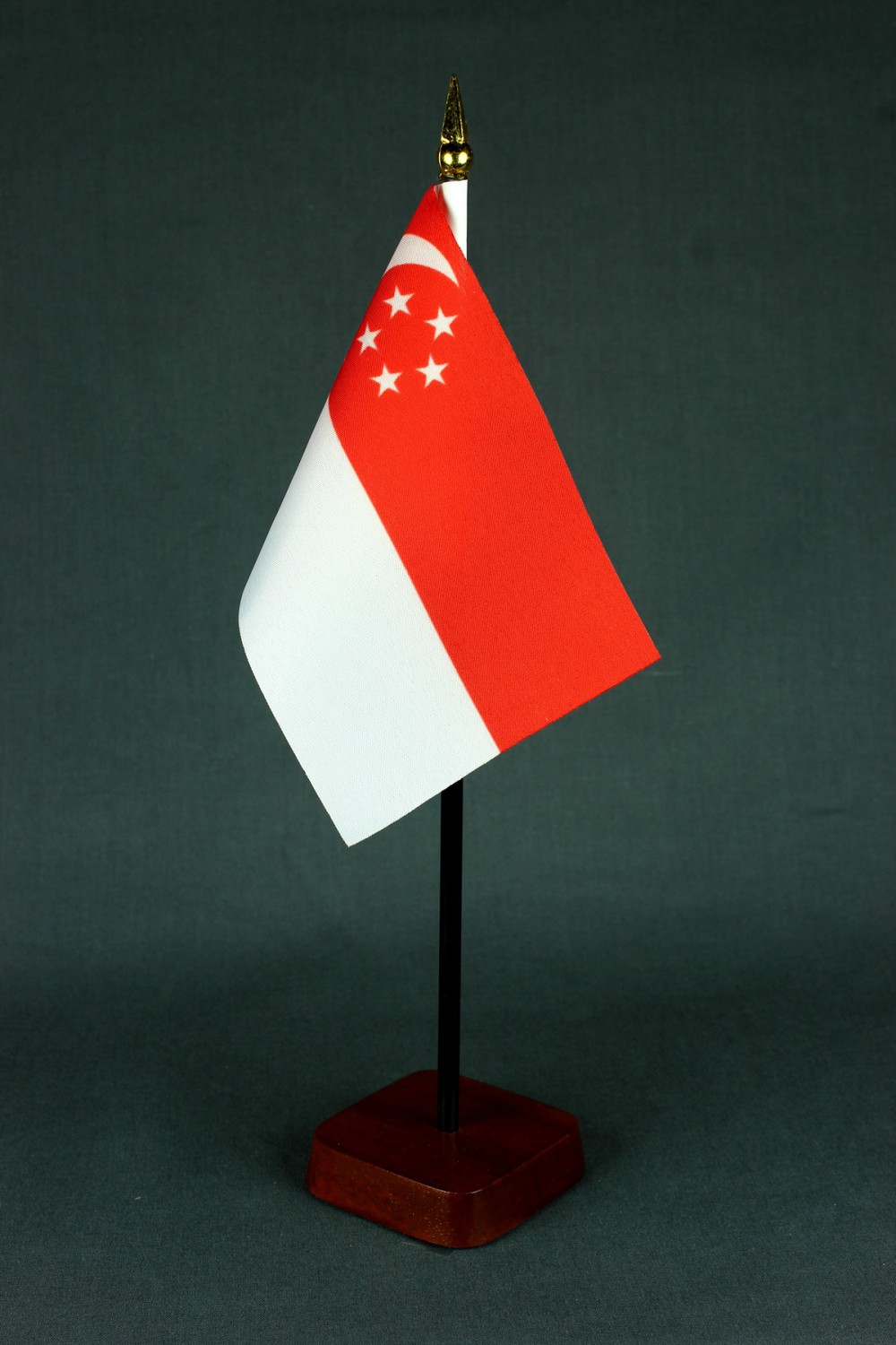 Kleine Tischflagge Singapur 10x15 cm optional mit Tischfähnchenständer