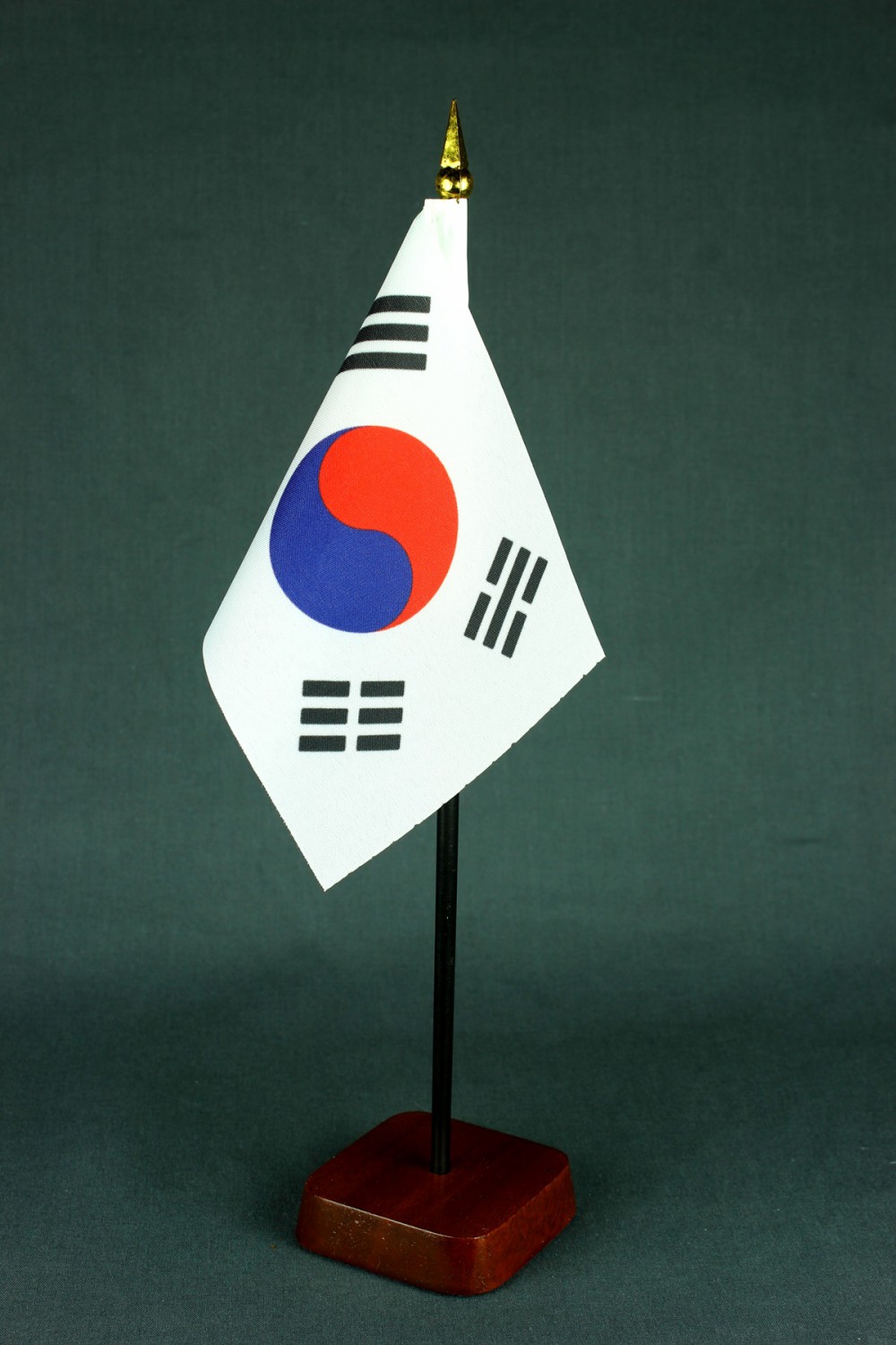 Produktinformationen "Kleine Tischflagge Süd Korea 10x15 cm optional mit Tischfähnchenständer"