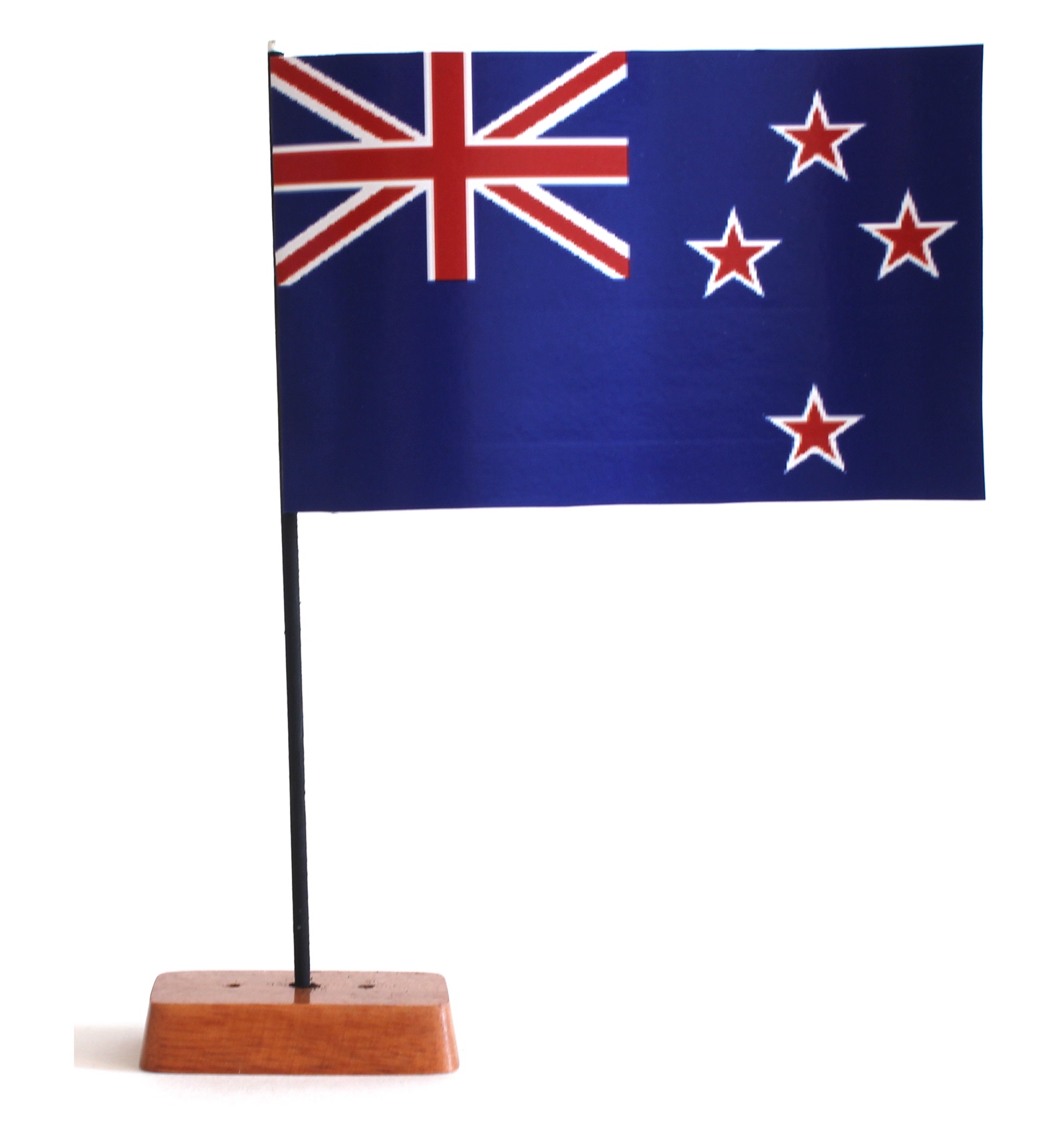 Mini Tischflagge Neuseeland 9x14 cm Höhe 20 cm mit Gratis-Bonusflagge und Holzsockel Tischfähnchen