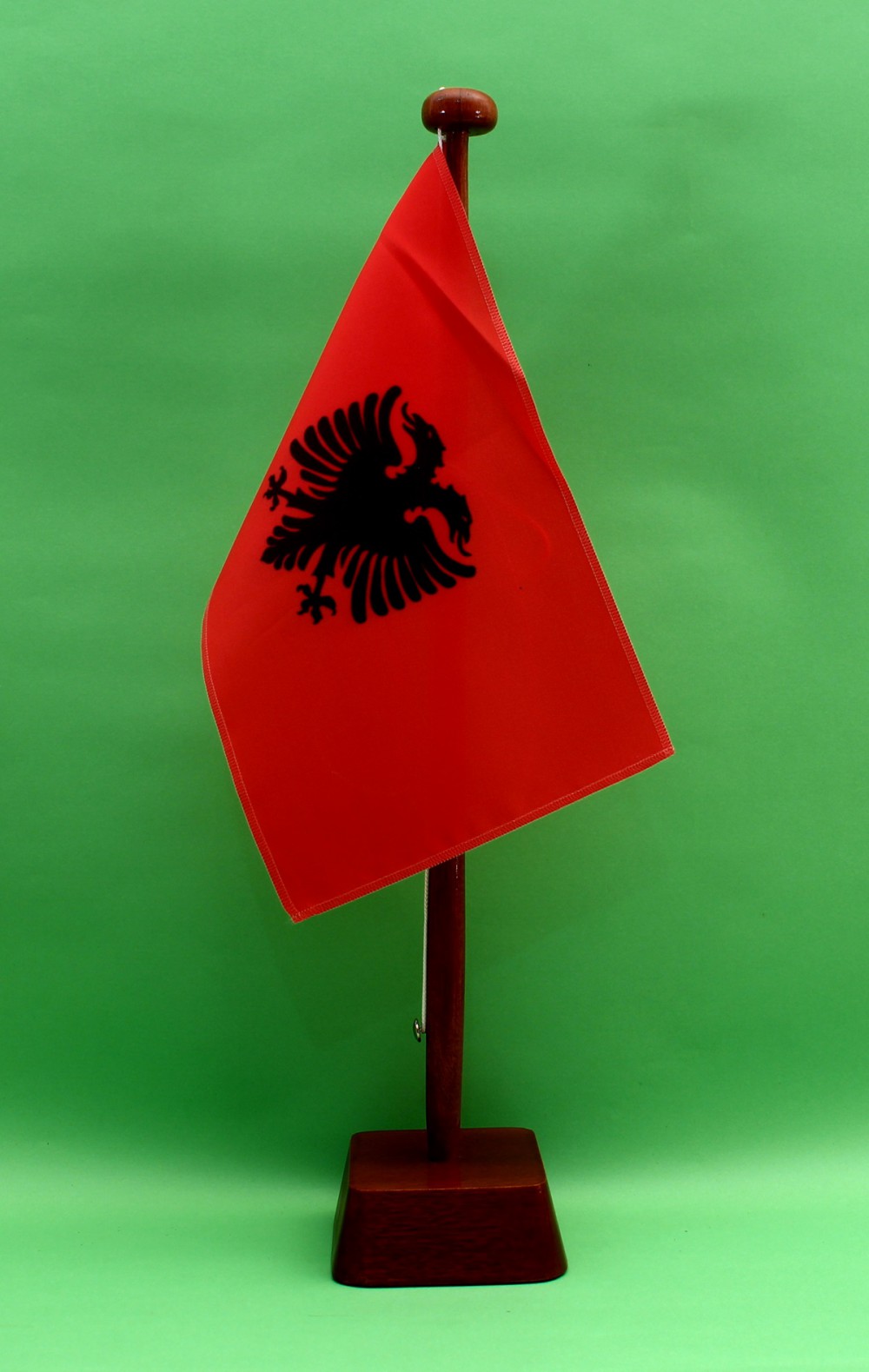 Tischflagge Albanien 25x15 cm optional mit Holz- oder Chromständer Tischfahne Tischfähnchen