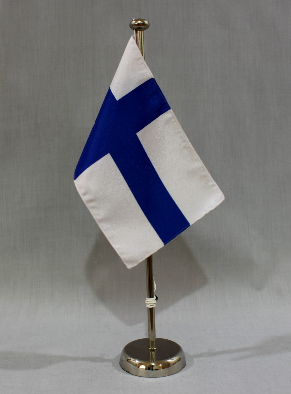 Produktinformationen "Tischflagge Finnland 25x15 cm optional mit Holz- oder Chromständer Tischfahne Tischfähnchen"