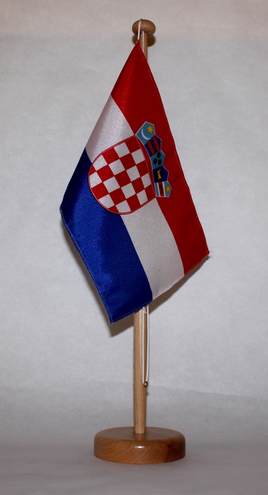 Produktinformationen "Tischflagge Kroatien 25x15 cm optional mit Holz- oder Chromständer Tischfahne Tischfähnchen"