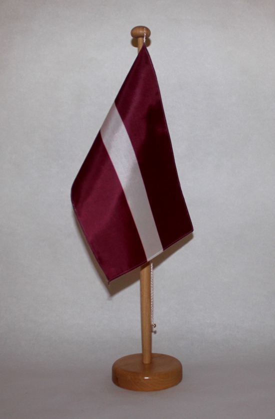 Produktinformationen "Tischflagge Lettland 25x15 cm optional mit Holz- oder Chromständer Tischfahne Tischfähnchen"