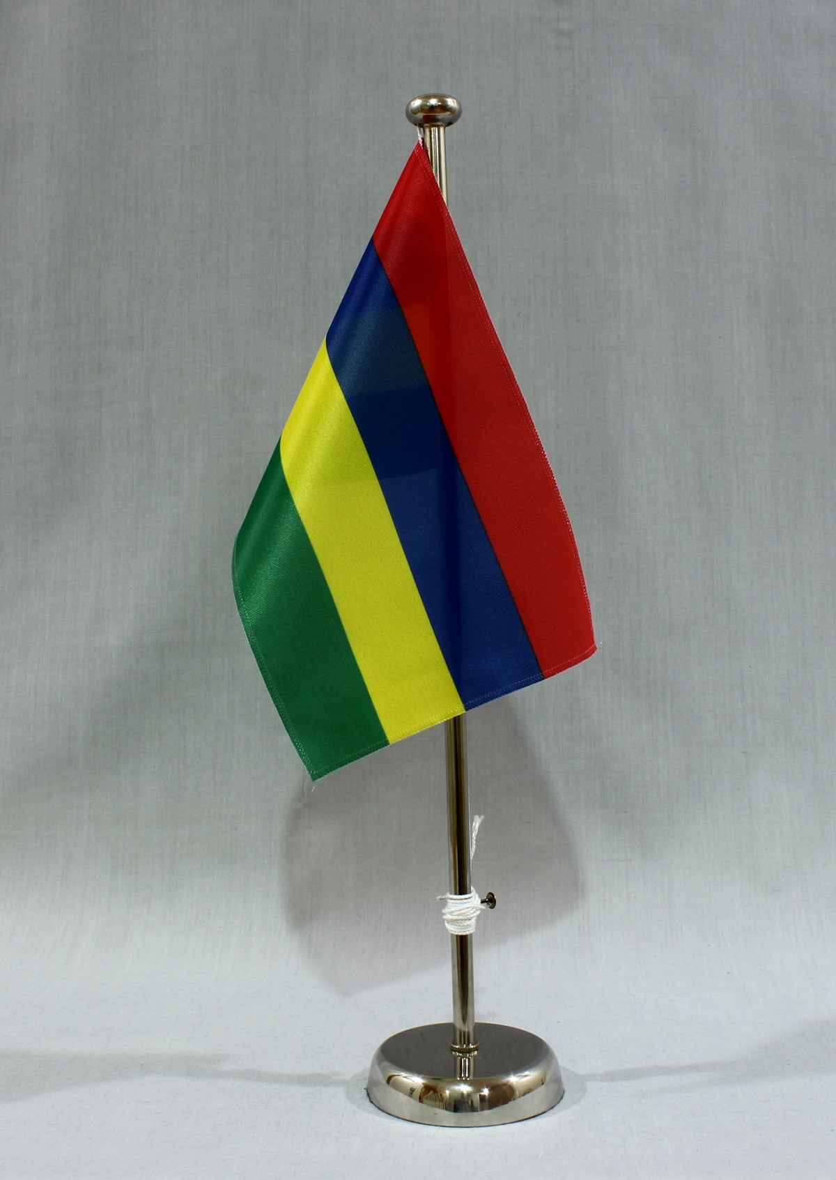 Tischflagge Mauritius 25x15 cm optional mit Holz- oder Chromständer Tischfahne Tischfähnchen