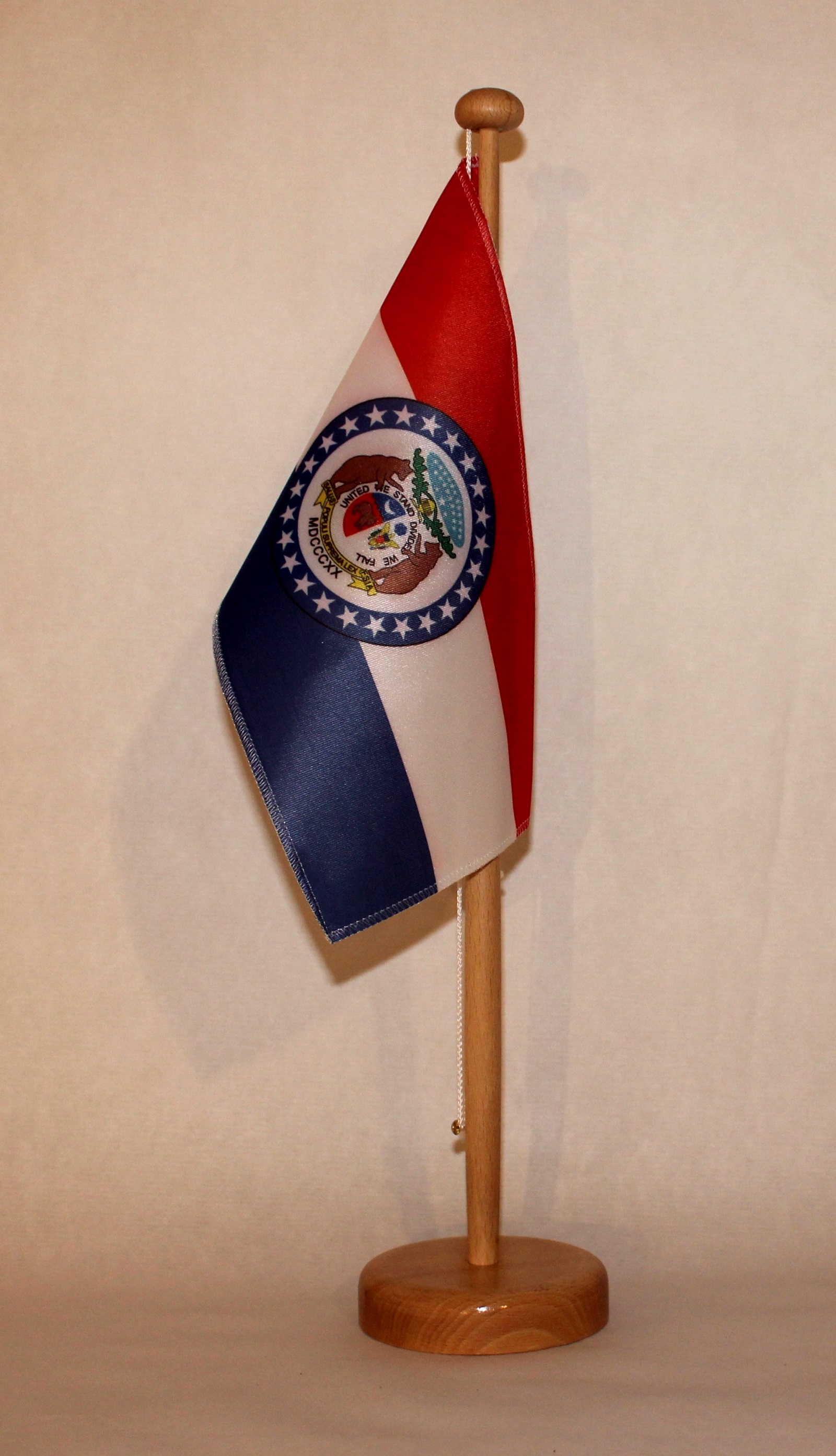 Produktinformationen "Tischflagge Missouri USA Bundesstaat US State 25x15 cm optional mit Holz- oder Chromständer Tischfah"