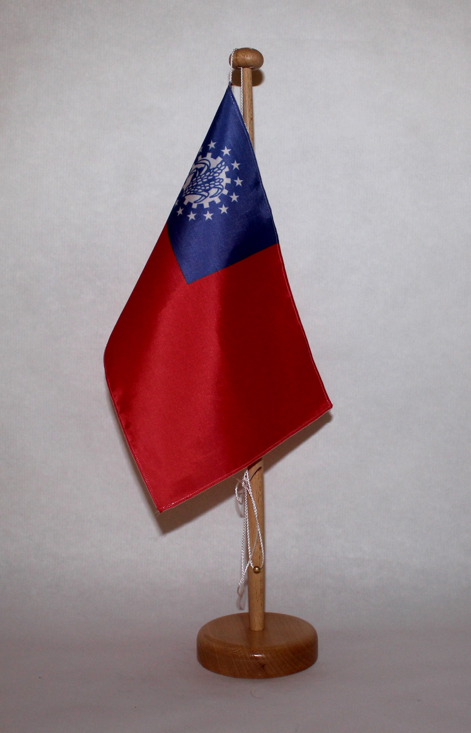 Produktinformationen "Tischflagge Myanmar Burma 25x15 cm optional mit Holz- oder Chromständer Tischfahne Tischfähnchen"