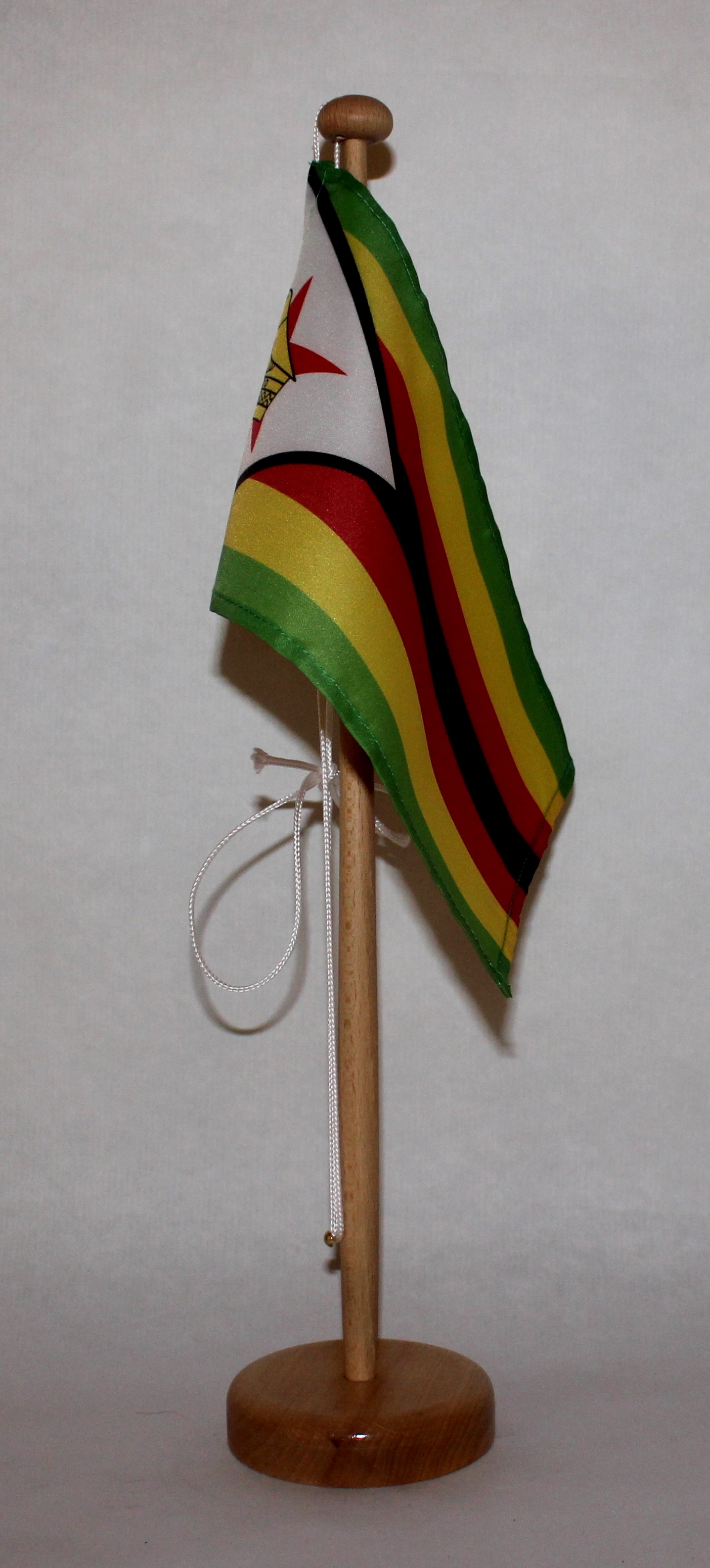 Produktinformationen "Tischflagge Simbabwe 25x15 cm optional mit Holz- oder Chromständer Tischfahne Tischfähnchen"