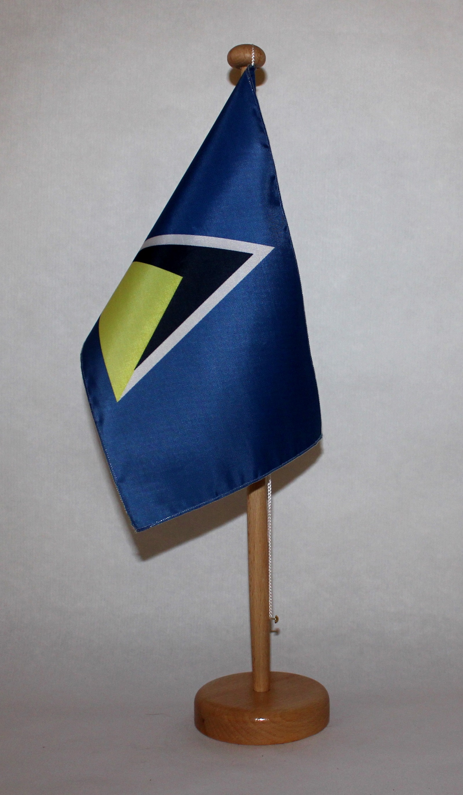 Produktinformationen "Tischflagge St. Lucia 25x15 cm optional mit Holz- oder Chromständer Tischfahne Tischfähnchen"