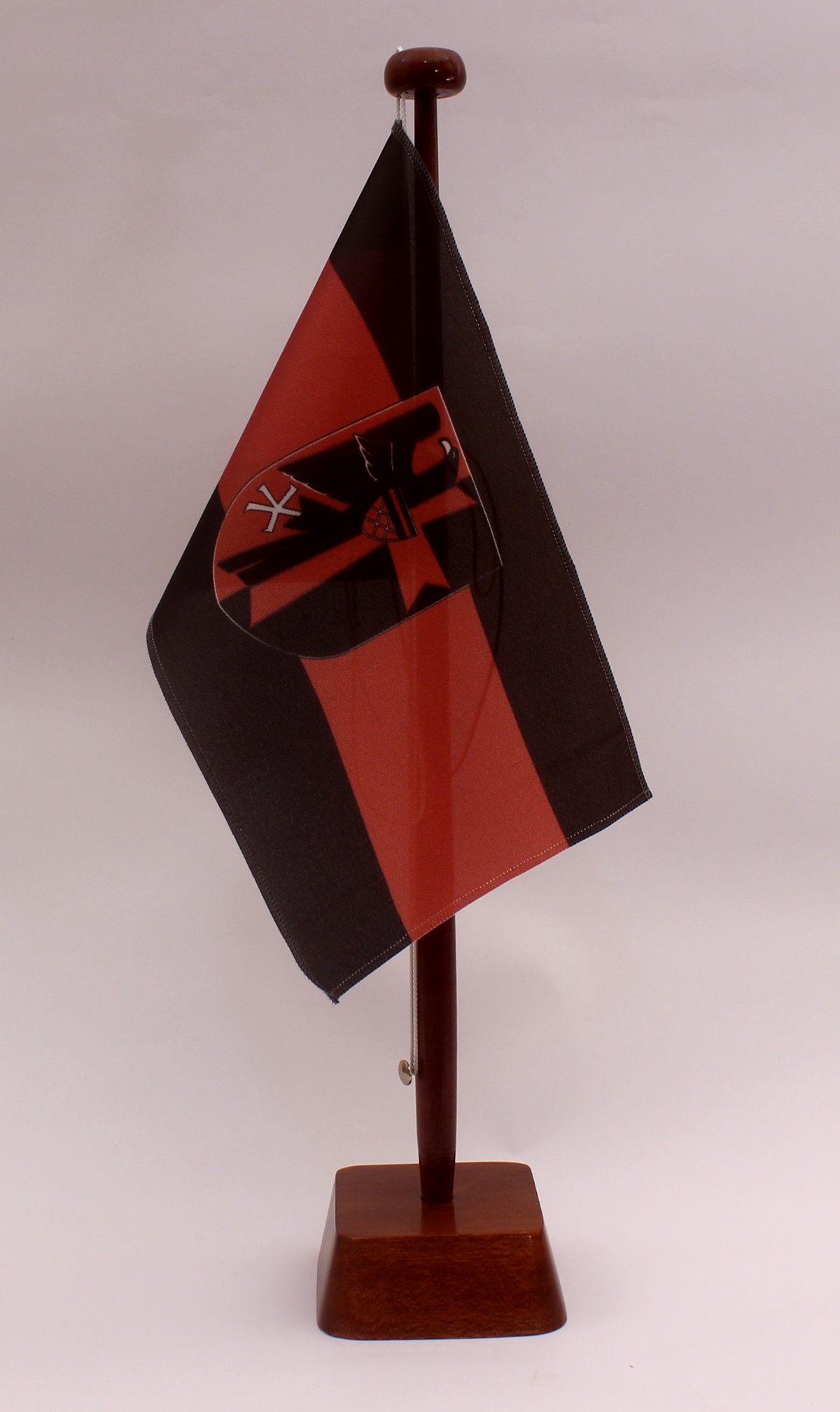 Sie können die Tischfahne mit oder ohne Ständer, oder nur den Ständer bestellen. Der Ständer ist aus lackiertem Massivholz, Höhe 42 cm und hat im Kopf 2 Bohrlöcher für die Flaggenleine sowie im unteren Bereich eine Metallöse. Der Flaggenmast wird in das runde Unterteil eingesteckt.