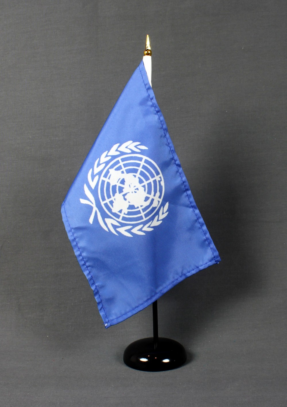 Produktinformationen "Tischflagge Uno Vereinte Nationen 15x25 cm BASIC optional mit Tischflaggenständer"